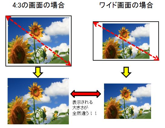 要するに同じ8インチでもワイドと4:3では表示される画像の大きさが全然違うんです。