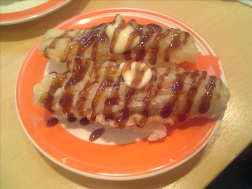 回転寿司のアトムボーイにある「ちくわの天ぷらにぎり」略して「ちく天」ですぅ☆