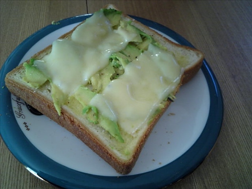 パンの上にアボガドを乗せ、スーパーで売っているクレイジーソルト